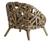 The Harmony Rattan Accent Chair evokes style and flair. The Harmony is defined by the creative chaos of its natural foundation. Thick rattan poles are first steamed and then flattened, before being woven into the frame that shapes this rebellious seat. A palm gray finish highlights the organic qualities that make this piece so unique, and a plush fatigue leather cushion keeps it comfortable and functional. The finish will vary.