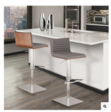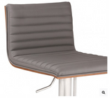 Catherine Adjustable Brushed Stainless Steel Barstool in Gray Faux Leather with Walnut