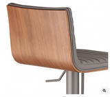Catherine Adjustable Gray Metal Barstool in Gray Pu with Walnut Back