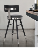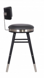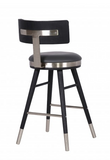- Black Brushed Wood Frame Accented with brushed stainless-steel band around seat, footrest, and legs