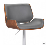 Lonnie Contemporary Swivel Barstool in Grey Faux Leather with Chrome and Walnut Wood