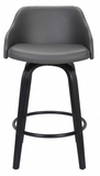 - Alex Contemporary Swivel Barstool in Black Brush Wood with Black Powder Coated Finish and Grey Faux Leather