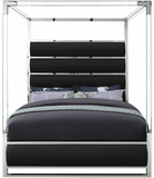 All things Bliss. Eye-catchingly elegant, this bed features a boxy canopy design for a grand presentation in your space. Acrylic posts add a contemporary feel to the bed's overall look, and the heavily padded headboard is upholstered in soft faux leather that's durable and tough yet gives the same supple effect as real leather. The matching footboard is also padded for a cohesive presentation in your room.