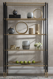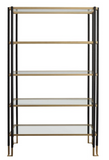 The Biltmore Display shelf is a true beauty. Featuring a clean lined solid iron frame, this contemporary etagere is finished in a two-toned matte black and gold leaf. Has five tempered glass shelves providing ample display space.