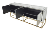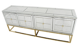 Marbled Mirrored Long Cabinet with Gold Metal Base and Doors