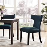 The Ferguson Dining Chair is a curvaceous piece with nailhead trim that would look great in your dining room area. Select from an assortment of colors to add a pop of color to your space. These chairs are padded with dense foam for your comfort around the dining table.