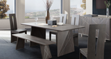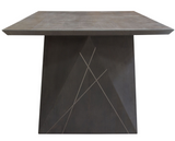 The Vanguard Modern Dining Table is edgy and modern. The sloping lines and geometric design will give your guest a true wow factor. The table is constructed of Grey Finish Mango Wood with Silver Metal Inlay. Pairs with the Vanguard dining Chair.