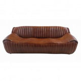 The Channel Leather sleek sofa boast style and vintage appeal.  The ribbed channels deep stitched with the rich leather is appealing and comfortable. Make a statement in your seating space with this modern leather sofa.