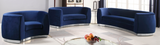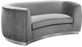 The Shell curved loveseat features beautifully upholstered velvet with a shiny chrome stainless steel base. Using the highest quality velvets this set is sure to stun your guests. The curved sofa is gracious and visually makes small spaces appear larger. Add some flair to your living area with this stunning sofa.