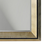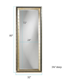 This Contemporary mirror features an Art Deco styled rectangular frame. The piece has a tonal bright silver leaf finish with a smooth black inset. Its oversized stature makes it perfect for leaning against the wall in a modern or contemporary setting.  Great for dressing mirror in bedrooms or to fill empty corners with style.
