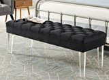 Energize your bed or living room décor with the Clever II Performance Velvet Bench. Luxuriously tufted buttons adorn the soft, stain-resistant performance velvet upholstery for an exquisite look of exceptional appeal. Easy on visual space and elegantly chic, Clever II comes densely padded in foam with four clear acrylic legs. The perfect addition to the modern home or apartment, instantly transform your room of choice with this exceptional piece.