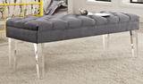 Energize your bed or living room décor with the Clever II Performance Velvet Bench. Luxuriously tufted buttons adorn the soft, stain-resistant performance velvet upholstery for an exquisite look of exceptional appeal. Easy on visual space and elegantly chic, Clever II comes densely padded in foam with four clear acrylic legs. The perfect addition to the modern home or apartment, instantly transform your room of choice with this exceptional piece.
