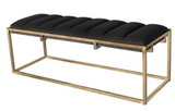 The Shultz Black tufted bench is stylish. Add serious style to any living space with this stunning metal bench. Crafted with a crisp, angular metal base, it showcases sleek lines of metal for a truly elegant look. The base boasts a beautiful gold finish that adds a luxurious touch of polish. The seat is upholstered in rich, dark grey velvet for an exquisite look and feel. Deep, vertical channeling completes its design with dramatic, modern flair.