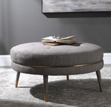 Tesla Cocktail Ottoman With Brushed Brass Steel Trim and Feet.