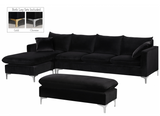 The Damien Reversible Modern Sectional is bold and comfy. This striking set blends the modern with the traditional for a look that wows from every angle. Luscious velvet provides a neutral element to your room, ensuring its easy fit with existing furnishings. Choose from either set of legs, both gold and chrome included, to customize the sectional to your specific tastes. Pillows come with this sectional, adding to its welcoming feel.