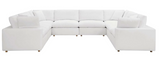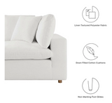 A haven for cozy relaxation, Plush Pit features plush comfort, clean-lined design, and spacious profile, that makes an attractive statement in the modern home. Upholstered in soft polyester and linen fabric, this living room set comes with solid wood construction and cotton and down cushions for a luxurious sink-in feel. Plush Pit comes with generously padded down feather and cotton cushions, and padded foam bases, making this sectional sofa collection perfect for the living room, family room, or game room. Made for sprawling out or curling up, Plush Pit beckons you and guests to sit and stay a while. Includes plastic foot glides. Move ottoman to any side to maximize comfort.