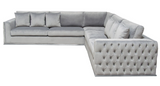 The Taylor Modern Grey Sectional is the pinnacle of style and comfort. The Rich grey velvet is accented with a chrome bottom rail that goes around the entire sofa. Perfect for the modern interior where comfort and style is a must. Includes 6 Matching Pillows. Fully Assembled