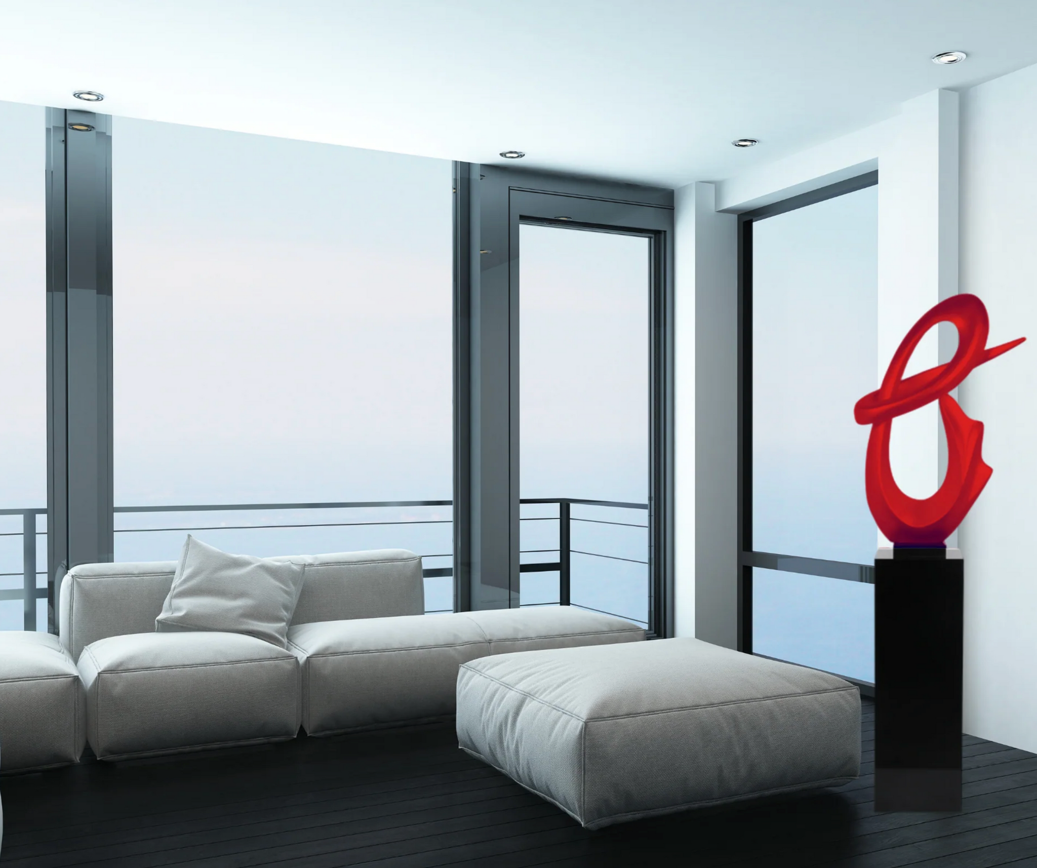 Continuium Red Abstract Sculpture on Black Gloss Stand