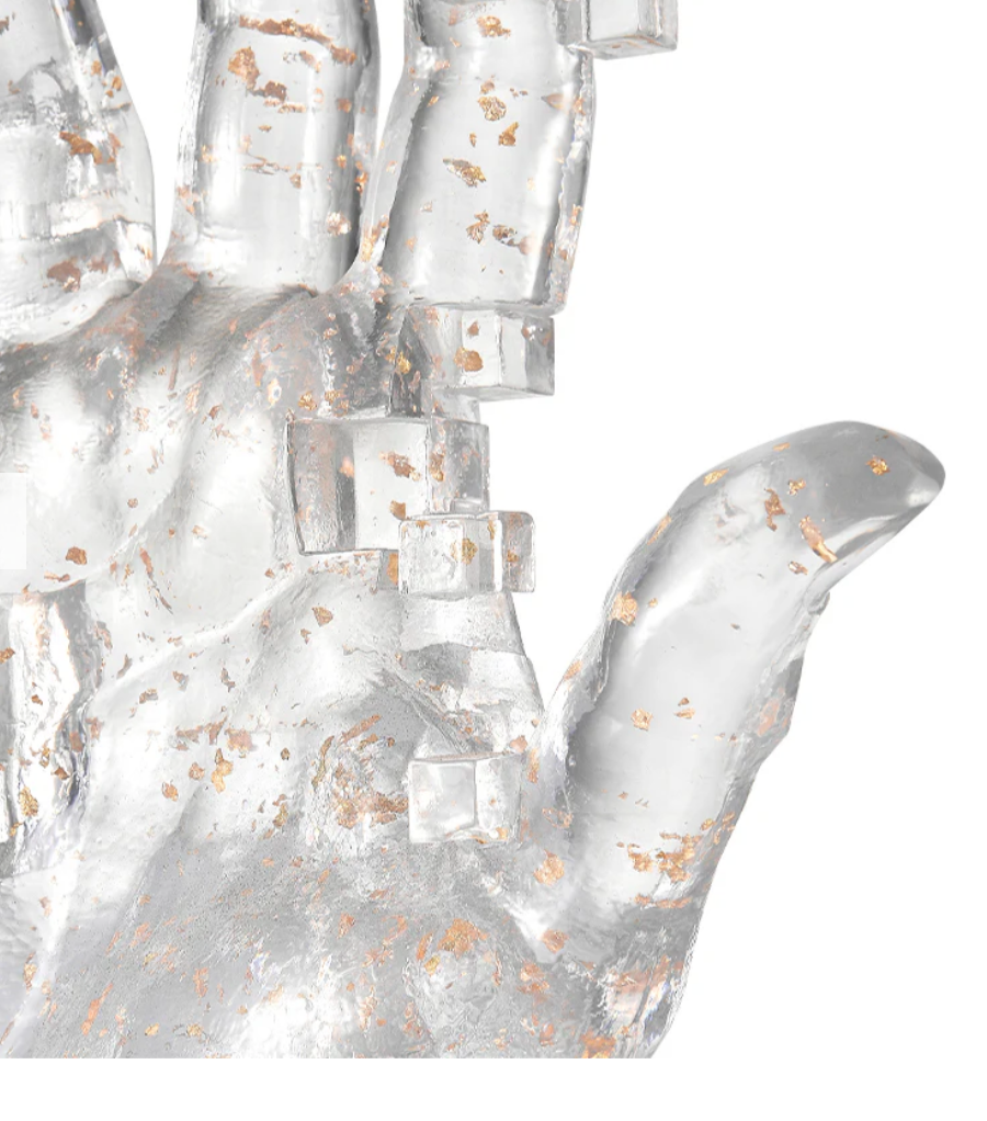 The Handi Sculpture is a conversation starter. The Pixel Hand Sculpture in Matte White is a powerful fusion of digital abstraction and human form, sculpted to stand out in modern and conceptual interiors. Handmade from resin, this expressive piece features a fragmented pixel-like surface that reflects the dialogue between technology and touch. Its clean matte white finish enhances the sculptural lines, making it a versatile art object for minimalist spaces, gallery-inspired rooms, or curated office decor.