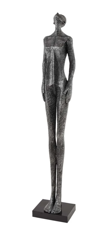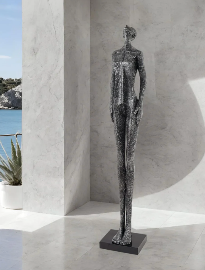 The Looking up sculpture will surely be a conversation piece. A refined resin sculpture that speaks volumes through its stillness. Crafted with meticulous attention to detail, this tall and slender figure stands with a quiet grace, its head gently tilted upward as if lost in thought or awe of the world around.