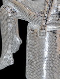 Mosaic Mirrored Sitting Woman Sculpture Silver