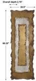 Heavily oxidized rough cut sheet metal layered to create a 3-dimensional panel in tones of antique bronze, silver, and gold. May be hung horizontally or vertically.