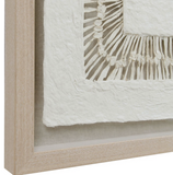 The Mod Parchment wall decor has a calm and sensible style. Artfully constructed of hand cut Mulberry paper carefully hand knitted together in a 3-dimensional display, creating a unique global look. Set atop a beige linen backing and showcased in a naturally finished pine shadow box. May be hung horizontal or vertical. Oversized Wall Art.