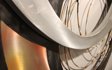 Yin and Yang is a pair of ground and color-tinted steel pieces with copper elements. This wall decor can be displayed side by side or one atop the other. This pair will look great in a bedroom or in a living room.